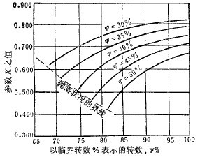 這兩個公式指出:最外層球的脫離角僅與轉速率有關,而最內層球的脫離角,即與轉速率又與裝球率(用K標志)有關。根據上面講的情況可知,為了保證最內層球也能處于拋落狀態(即所有球層都是拋落的),裝球率與轉速率必有一確定關系。而且這種關系又必有臨界點,過了這種臨界點,磨機的轉速不足以使暈內層球作拋落,鋼球于是處于瀉落狀態。這里將用計算結果