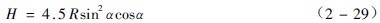 鋼球?qū)δサV過(guò)程有一定的影響,鋼球落下沖擊礦石的能量,來(lái)自它落到終點(diǎn)時(shí)的動(dòng)能。此動(dòng)能的大小,決定于鋼球的落下高度。而磨機(jī)的轉(zhuǎn)速又決定著鋼球的落下高度,所以決定磨機(jī)轉(zhuǎn)速的方法直接和分析鋼球落下時(shí)的動(dòng)能有關(guān)。由圖3-2-11可知,鋼球落下高度H的值為