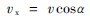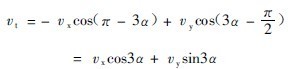 將速度vp的水平分速度vx,和垂直分速vy投到徑向分速度vn的方向上,則