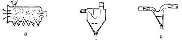 圖1(a)和(e)表示的是在上升氣流中進行的分級器。前者得兩種產(chǎn)物;后面一種,物料從上,氣流從下部供入,可得三產(chǎn)物。