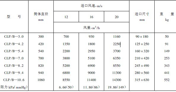 表2 CLP/B型旋風集塵器技術規(guī)格(一)