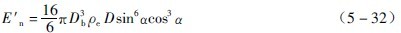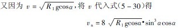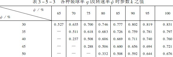 式中; R1、R2————外層和內(nèi)層球的球?qū)影霃健=R2/R1,k與轉(zhuǎn)速率和裝球率有關(guān),k可直接由表3-5-3中查取。又D0=2R0,則“中間縮聚層”上的一個(gè)球落到落回點(diǎn)襯板上的法向沖擊動(dòng)能En