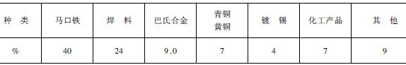 據(jù)統(tǒng)計,目前錫的主要用途和所占比例列于表1。